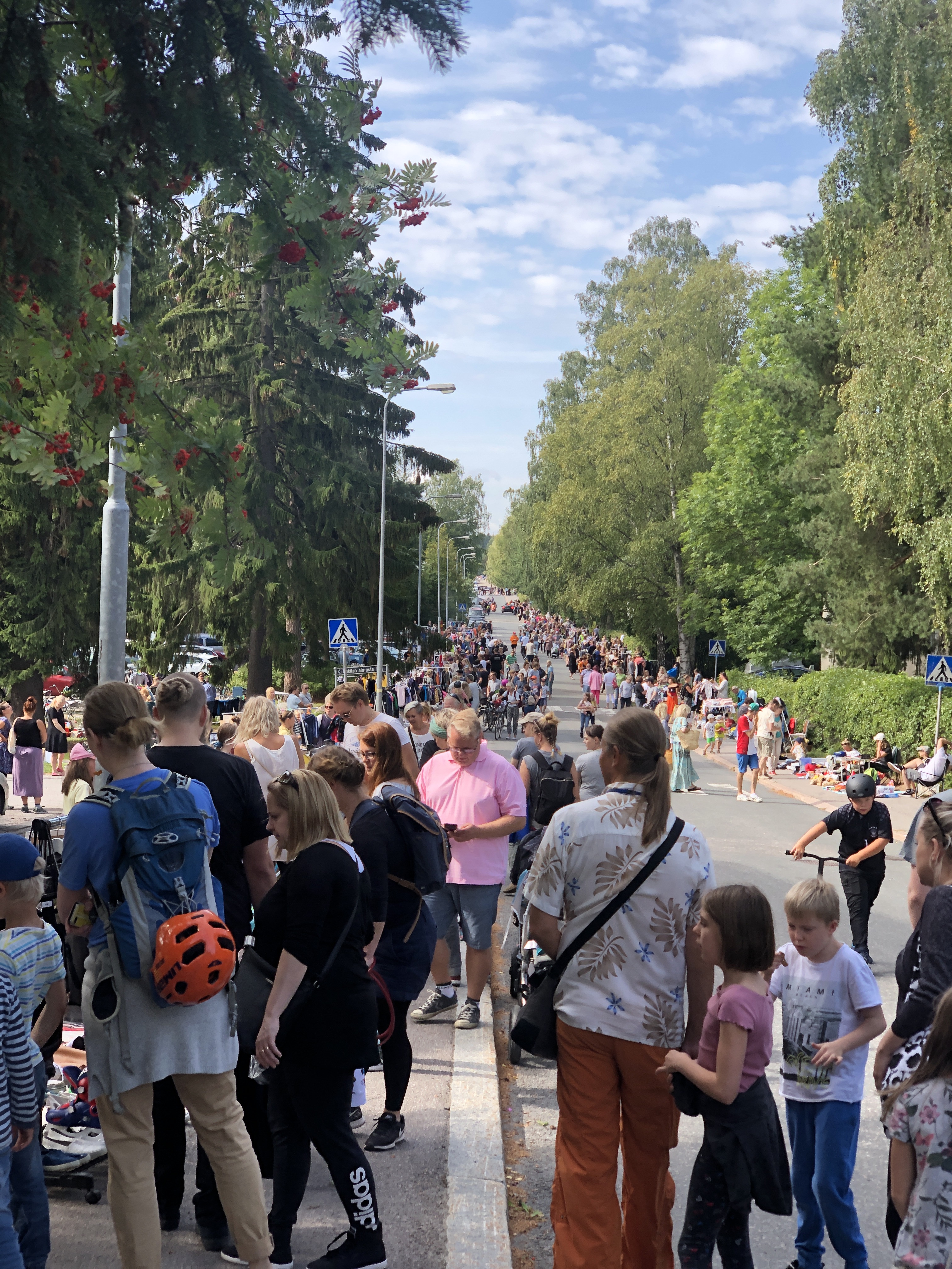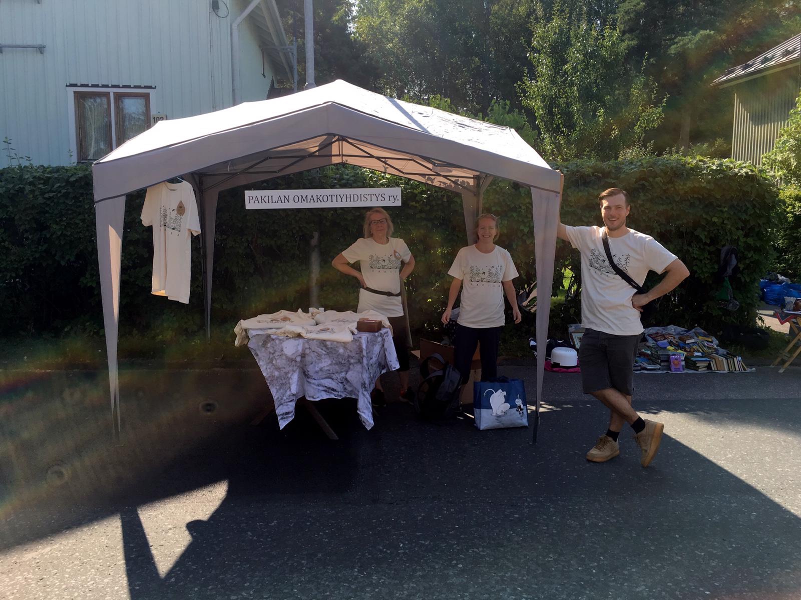 Vuoden 2019 katukirppis järjestettiin Halkosuontiellä. Aurinko helli elokuisena lauantaina ja väkeä riitti kadun täydeltä. Myyntipöytiä oli yli 100 ja kauppa kävi kivasti. Omakotiyhdistyksen juuri painosta tulleet t-paidat kiinnostivat pakilalaisia. Hienoa, että perinteinen kirppiksemme on saanut viime vuosina lisää suosiota!